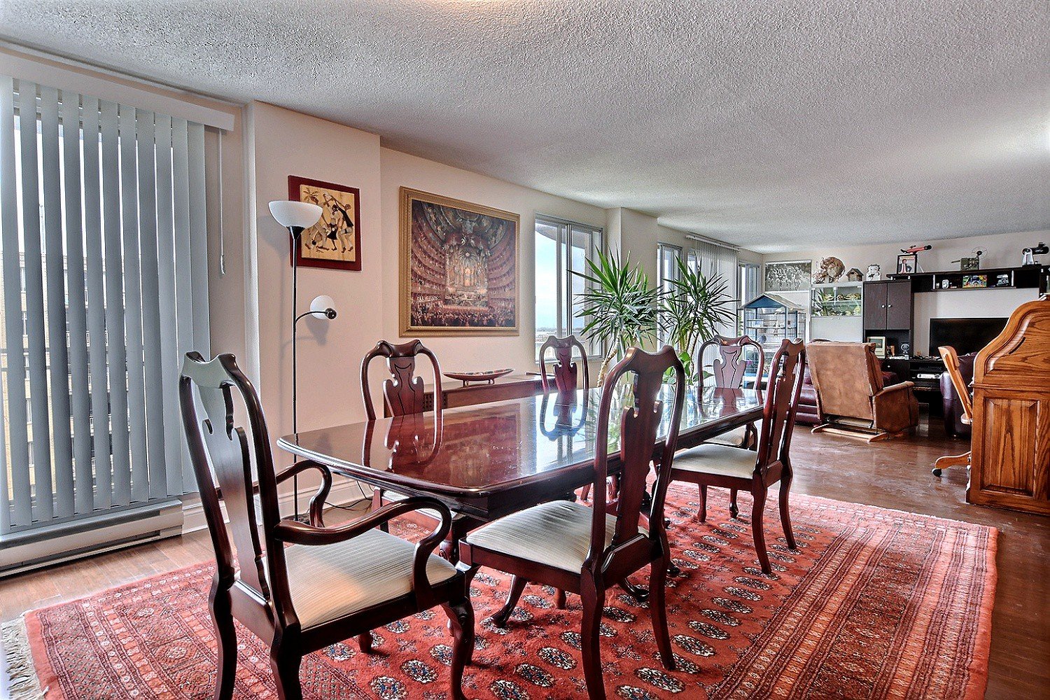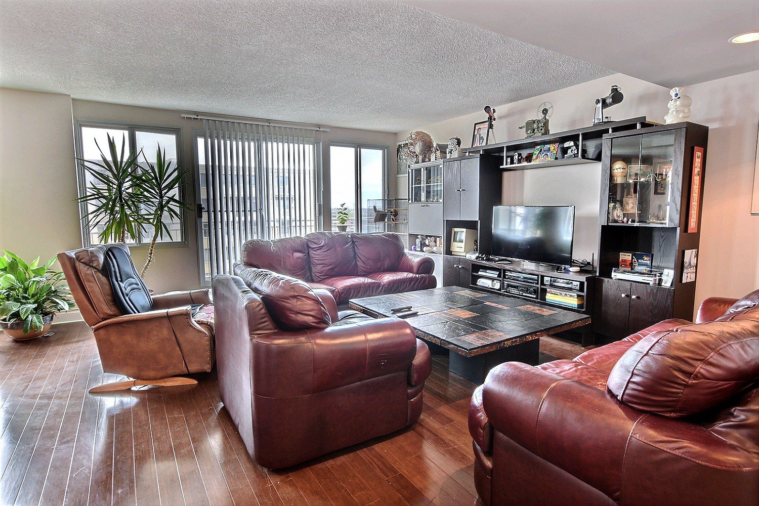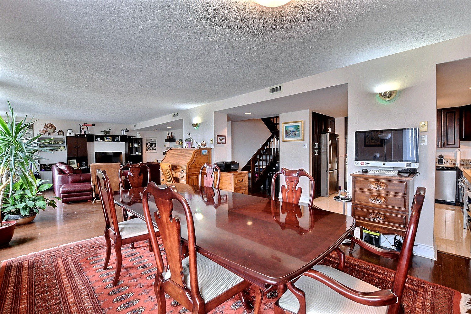 Spacious condo on two floors offering a large reception , 3 bedrooms two full bathrooms , a powder room, 2 indoor garages, heated pool, gym, close to Cote -Vertu mall, very well maintained building