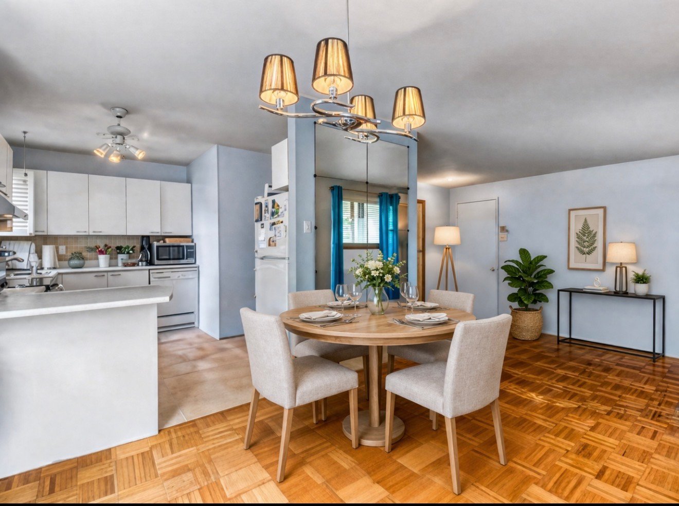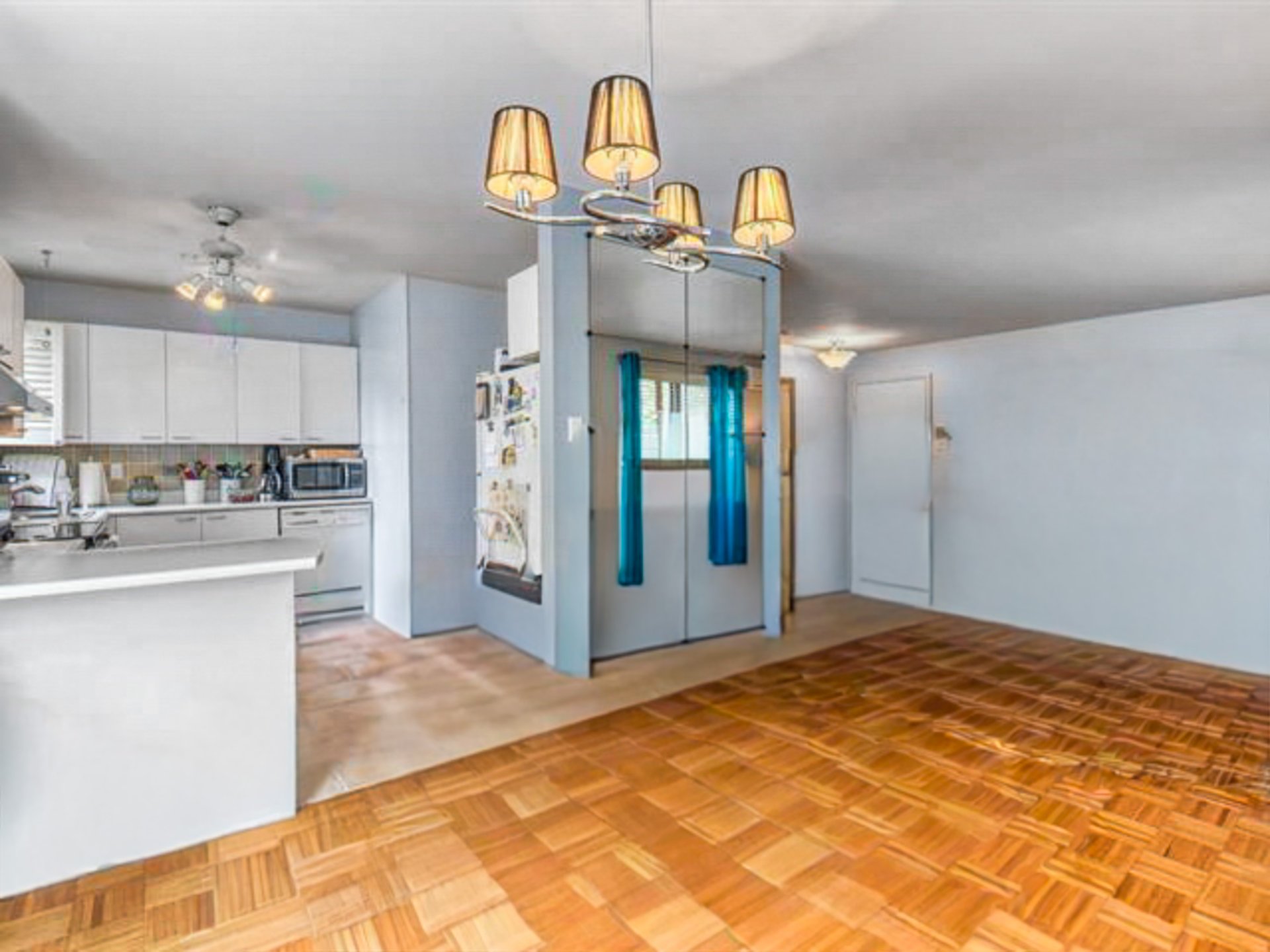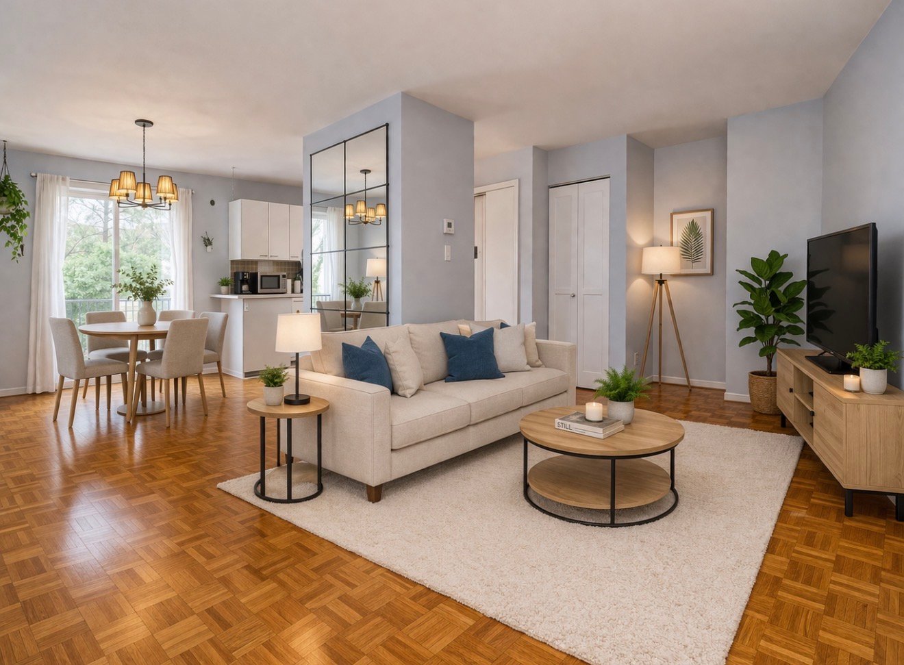 bright and inviting living space. The unit features two bedrooms, a full bathroom, a powder room, and an open-concept living and dining area perfect for entertaining. It includes one outdoor parking space and a private storage unit. Ideally situated just minutes from Quartier DIX30, major highways, schools, and parks. Residents will enjoy nearby modern sports facilities, including an aquatic complex and new tennis and pickleball courts. Commuting is a breeze with direct access to downtown Montreal via the REM and public transit.